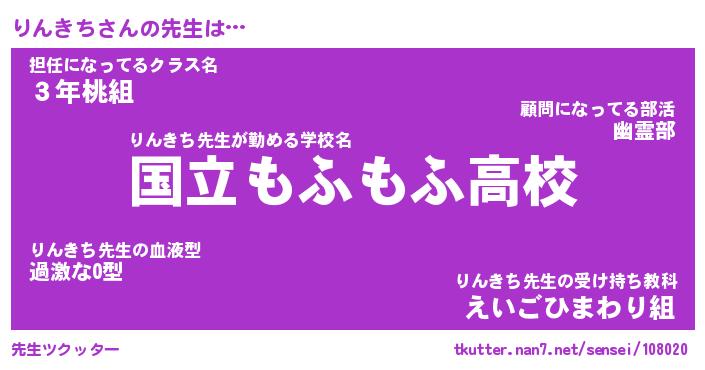 | 意味不明あだ名 | 『ペロリンりんきち』『永久保存りんきち』 |