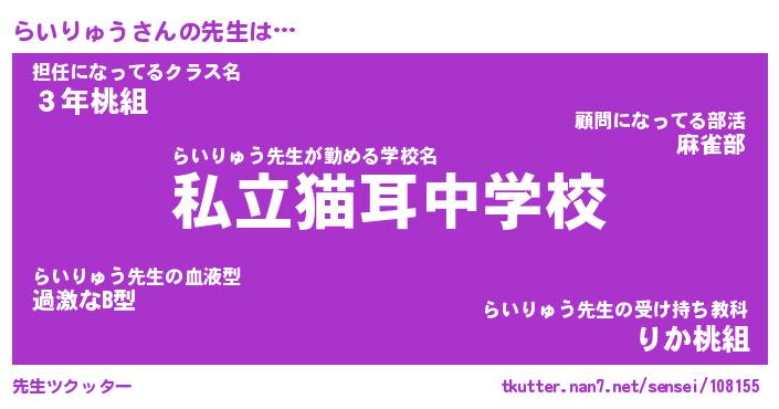| 肩書あだ名 | 『らいりゅう社長』『らいりゅう国家主席』 |