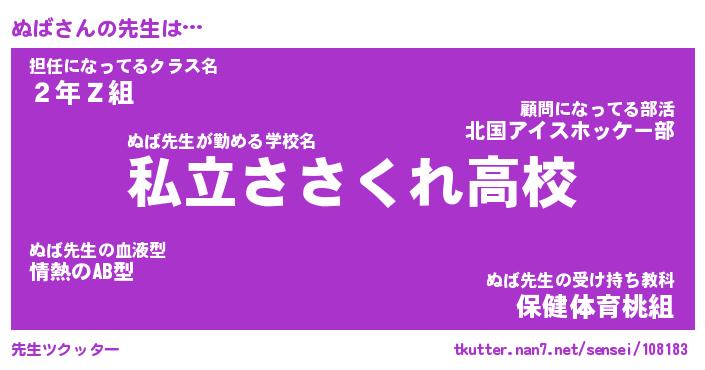 | ヘコむあだ名 | 『ぬばもー』『牛乳』『ぬばっ子』 |