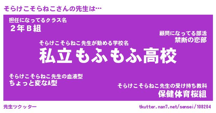 | ヘコむあだ名 | 『そらにゅー』『つくし』『そら太郎』 |
