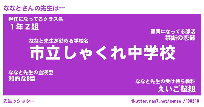 | 伝説のあだ名 | 『伝説のスナイパーななと』 |