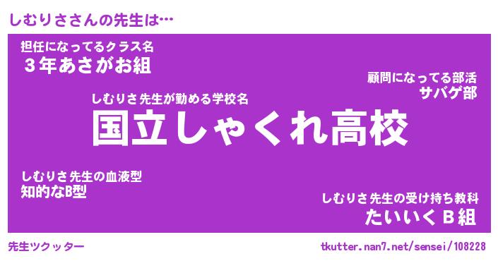 | 伝説のあだ名 | 『伝説のスナイパーしむりさ』 |