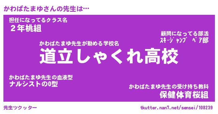 | 肩書あだ名 | 『かわばたまゆ御曹司』 |