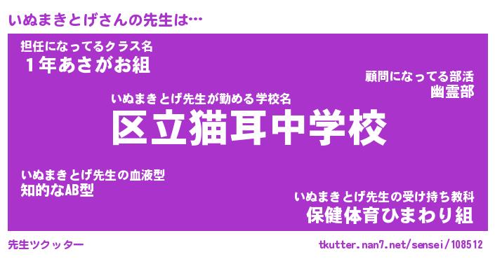 | 肩書あだ名 | 『いぬまきとげ社長』『いぬまきとげ班長』 |