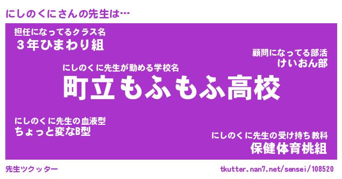 | ファンタジー風あだ名 | 『ニシフェル』『エターナルニシノクニー』 |