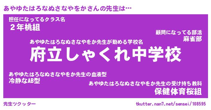 | 伝説のあだ名 | 『封印されしスナイパーあやゆたはろなぬさなやをか』 |