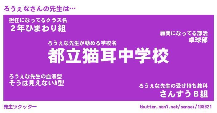 | 欧米人風あだ名 | 『マイケルろうぇな』『ウサインろうぇな』 |