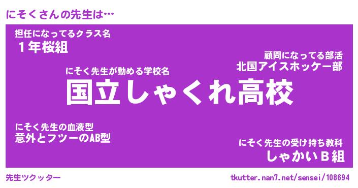 | ファンタジー風あだ名 | 『ニソフェル』『エターナルニソクー』 |