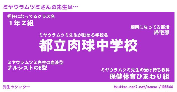| 恥ずかしいあだ名 | 『プリティーミヤウラムツミ』『ミヤちん』 |
