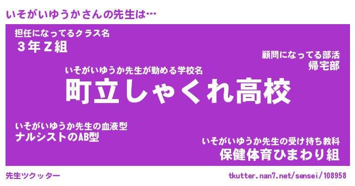 | 伝説のあだ名 | 『封印されしスナイパーいそがいゆうか』 |
