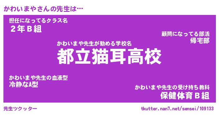 | ファンタジー風あだ名 | 『カワフェル』『エターナルカワイマヤー』 |