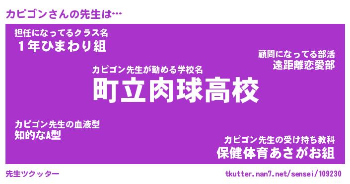 | 意味不明あだ名 | 『ペロリンカピゴン』『永久保存カピゴン』 |