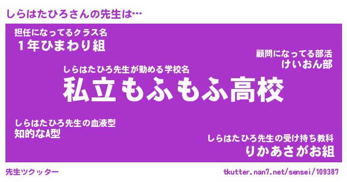 | 胡散臭い通販商品みたいなあだ名 | 『必ず成功する水晶球…その名も「しらはたひろ」』 |