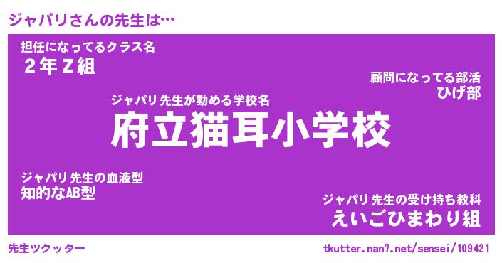| 意味不明あだ名 | 『ペロリンジャパリ』『永久保存ジャパリ』 |