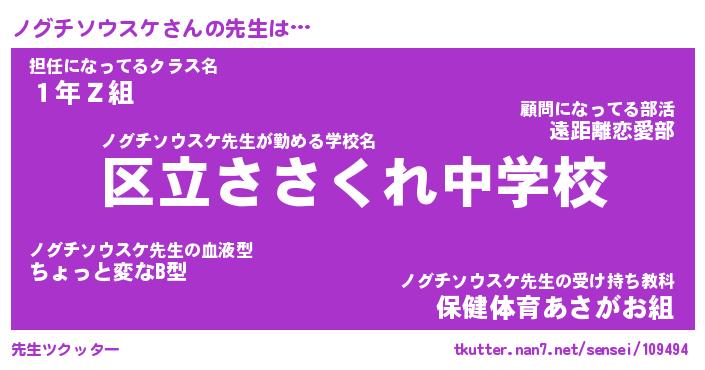 | 欧米人風あだ名 | 『マイケルノグチソウスケ』 |