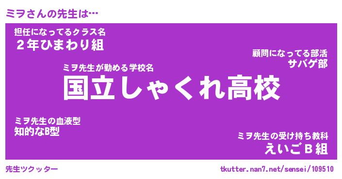 | 意味不明あだ名 | 『ペロリンミヲ』『ミヲフォーエバー』 |