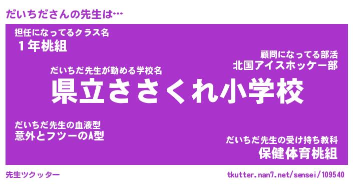 | 意味不明あだ名 | 『ペロリンだいちだ』『永久保存だいちだ』 |