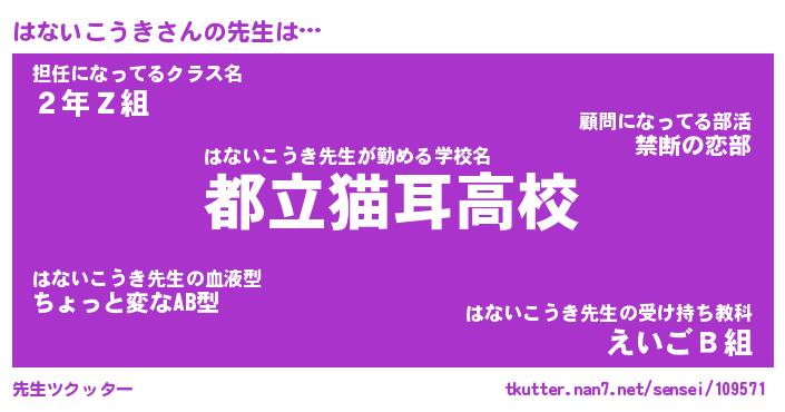 | ヒーロー風カッコイイあだ名 | 『スーパーハナイコウキ』『銀牙騎士ハナ』 |