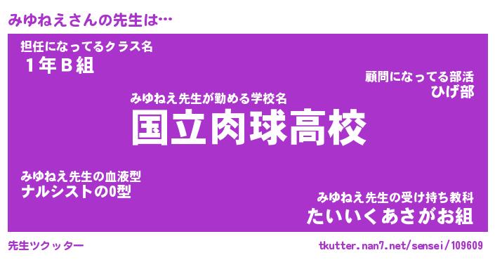 | 欧米人風あだ名 | 『マイケルみゆねえ』『ウサインみゆねえ』 |