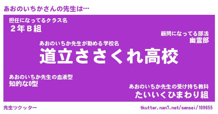 | ヒーロー風カッコイイあだ名 | 『スーパーアオノイチカ』『魔戒騎士アオ』 |