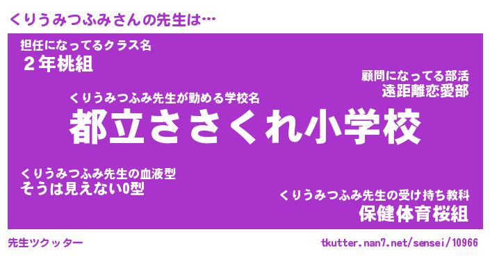 | 伝説のあだ名 | 『不死鳥のスナイパーくりうみつふみ』 |