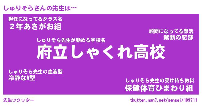 | 肩書あだ名 | 『しゅりそら御曹司』『しゅりそら副担任』 |