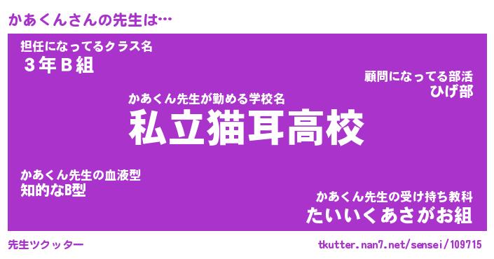 | 意味不明あだ名 | 『ペロリンかあくん』『永久保存かあくん』 |