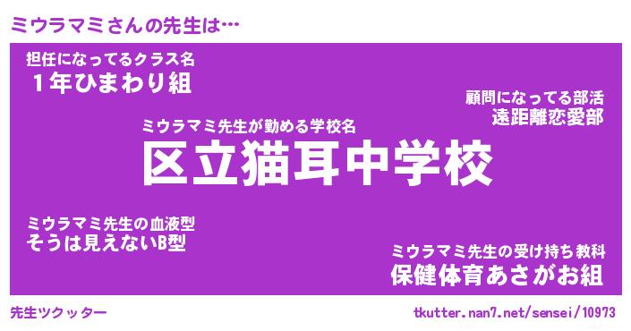 | ファンタジー風あだ名 | 『ミウフェル』『エターナルミウラマミー』 |