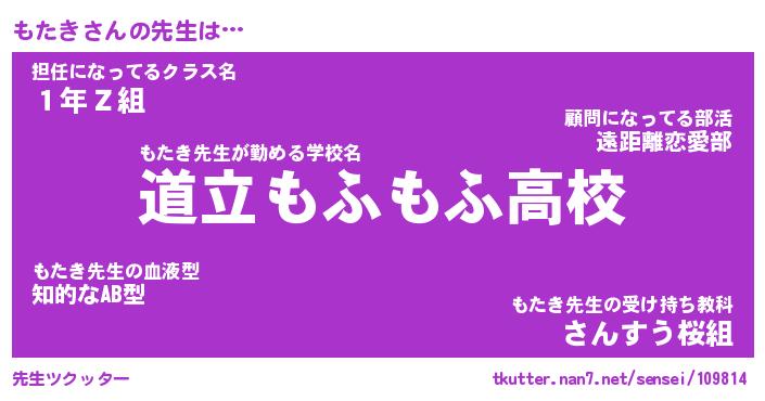 | ファンタジー風あだ名 | 『モタフェル』『エターナルモタキー』 |