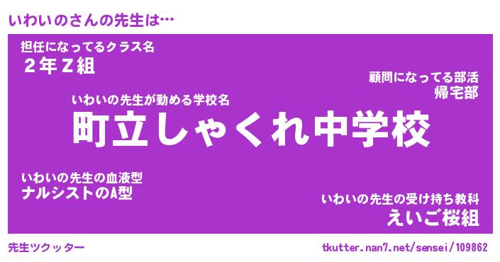 | 意味不明あだ名 | 『ペロリンいわいの』『永久保存いわいの』 |