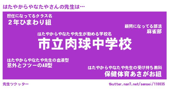 | 男性向けラノベタイトル風あだ名 | 『はたやからやなたやの憂鬱』 |