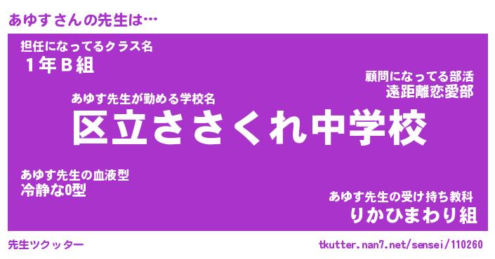 | 意味不明あだ名 | 『ペロリンあゆす』『あゆすフォーエバー』 |
