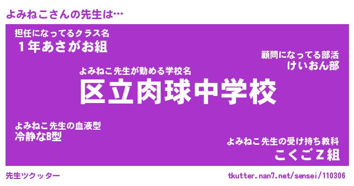 | ヘコむあだ名 | 『よみふぇ~』『つくし』『よみを』 |