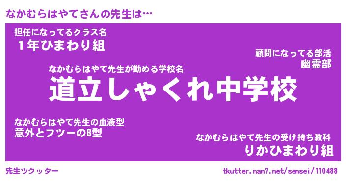 | ヒーロー風カッコイイあだ名 | 『スーパーナカムラハヤテ』 |