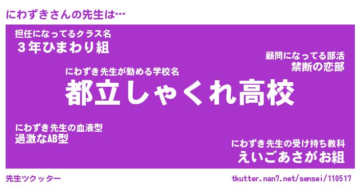 | ファンタジー風あだ名 | 『ニワフェル』『エターナルニワズキー』 |