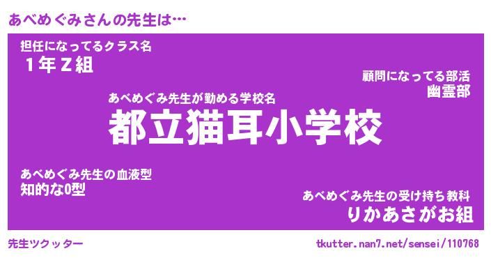 | 肩書あだ名 | 『あべめぐみ社長』『あべめぐみ総理大臣』 |