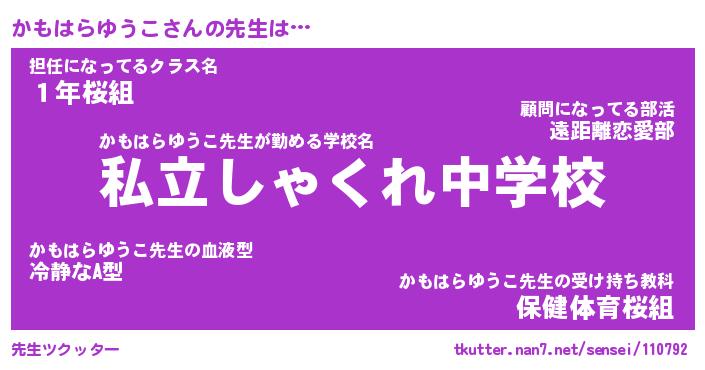 | 伝説のあだ名 | 『伝説のスナイパーかもはらゆうこ』 |