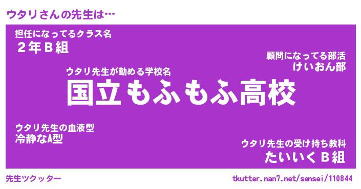 | ファンタジー風あだ名 | 『ウタフェル』『エターナルウタリー』 |