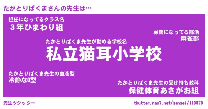 | 欧米人風あだ名 | 『マイケルたかとりばくま』 |