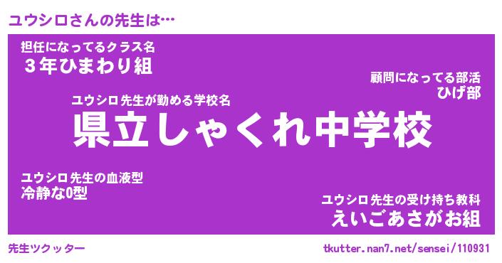 | ヒーロー風カッコイイあだ名 | 『スーパーユウシロ』『銀牙騎士ユウ』 |