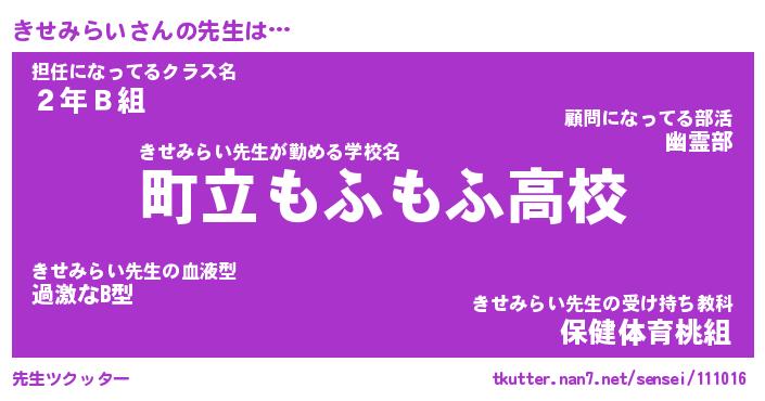 | ヘコむあだ名 | 『きせにゅー』『なまこ酢』 |