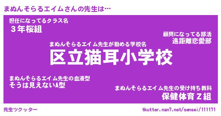 | 欧米人風あだ名 | 『マイケルまぬんそらるエイム』 |