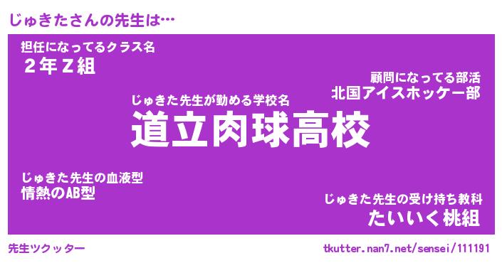 | 意味不明あだ名 | 『ペロリンじゅきた』『永久保存じゅきた』 |