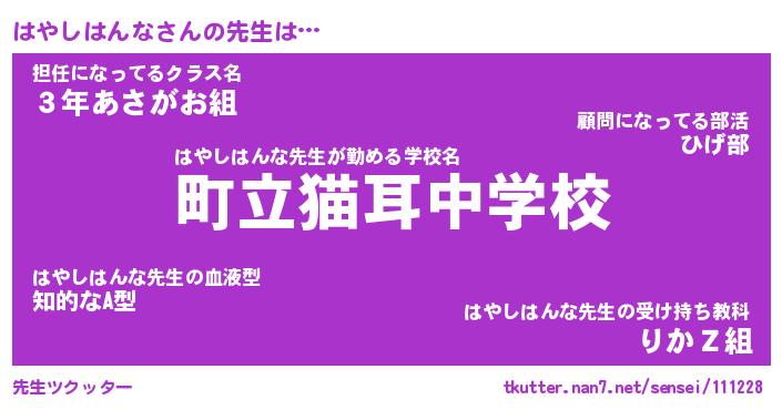 | ヒーロー風カッコイイあだ名 | 『スーパーハヤシハンナ』『炎刃騎士ハヤ』 |