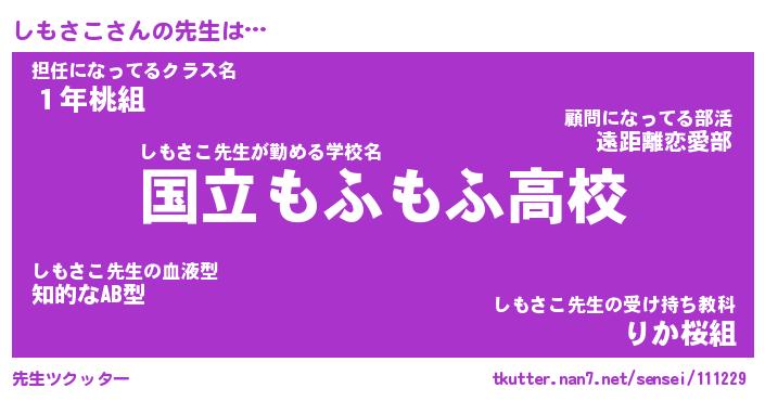 | 意味不明あだ名 | 『ペロリンしもさこ』『永久保存しもさこ』 |