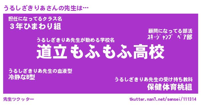 | ヘコむあだ名 | 『うるにゅー』『酢こんぶ』 |