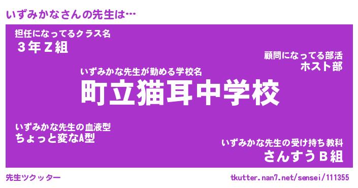 | 胡散臭い通販商品みたいなあだ名 | 『億万長者になれるブレスレット…その名も「いずみかな」』 |