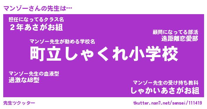 | 意味不明あだ名 | 『ペロリンマンゾー』『永久保存マンゾー』 |