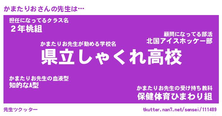 | 肩書あだ名 | 『かまたりお御曹司』『かまたりお班長』 |