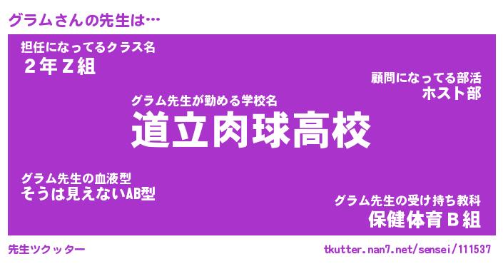 | 意味不明あだ名 | 『ペロリングラム』『グラムフォーエバー』 |